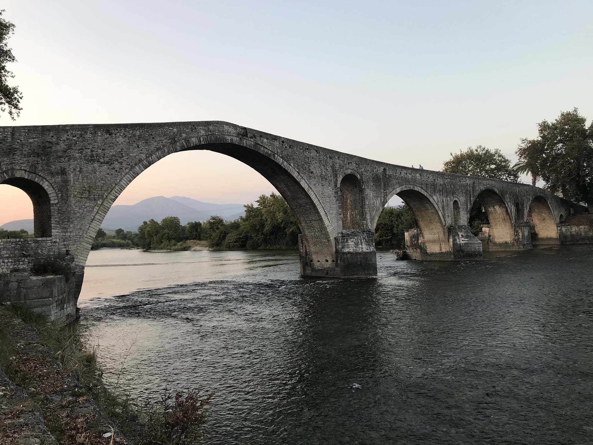 -The Legendary Bridge of Arta is one of the most famous and impressive single-arch stone bridges in Greece (although it is actually four-arched, with the largest arch reaching 18-19 meters). The asymmetrical arrangement of its arches makes it unique.